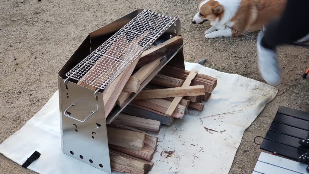 snow peak IGT各種にコーナーテーブル、焚き火を楽しむと同時に調理もできるよう買ったUNIFLAMEの薪グリルラージ
