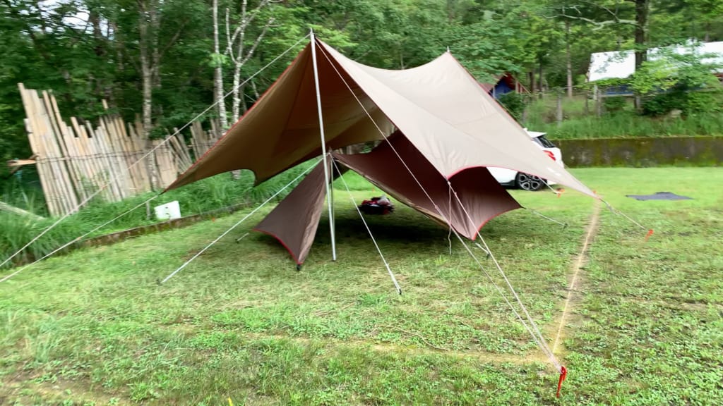 前方を 280cm、後方を240cm のウィングポールで設営しました。