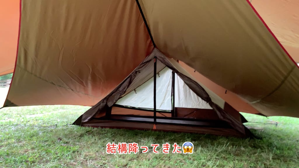 前室を跳ね上げているためヘキサイーズ1だけだと、雨の吹き込みには弱い印象です。