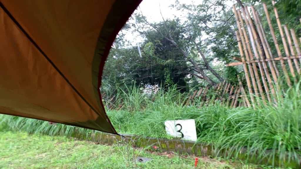 スイスポで行く能勢温泉キャンプ場で snow peak(スノーピーク)ヘキサダブル張りで豪雨と戦ったソロキャンプ(前編)