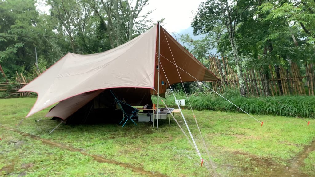 あと5分テントの設営が遅かったらびっしょびしょになったので、ぎりぎりセーフです。