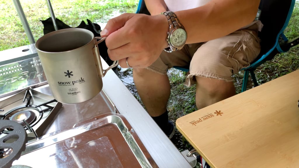 クルマでのキャンプは荷物を多めに持ってこれるのでキッチン周りは充実します。