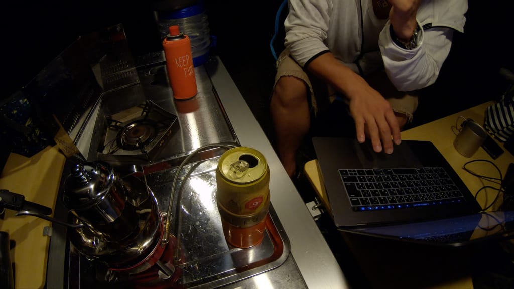 ソロキャンプだと邪魔が入らず集中しやすくて、編集作業にもってこいのひとときです。