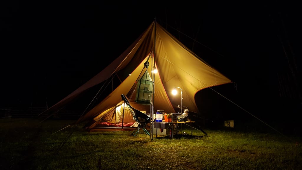 スイスポで行く能勢温泉キャンプ場で snow peak(スノーピーク)ヘキサダブル張りで豪雨と戦ったソロキャンプ(後編)