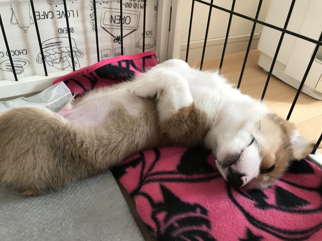 ゲージには寝るときに毛布をかぶせて、安心できるように。