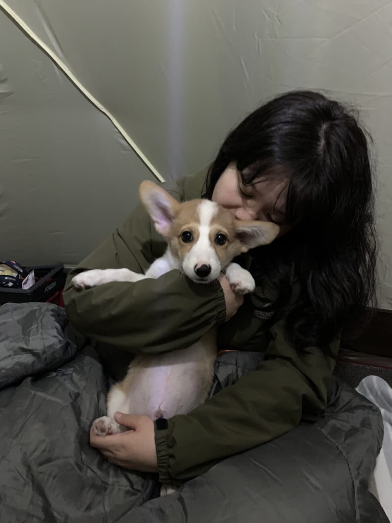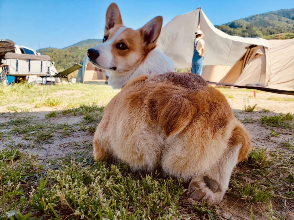 キャンプ犬っていつからデビューさせて良いのか分かりませんでしたが、生後4ヶ月になったペティは順応してくれました!