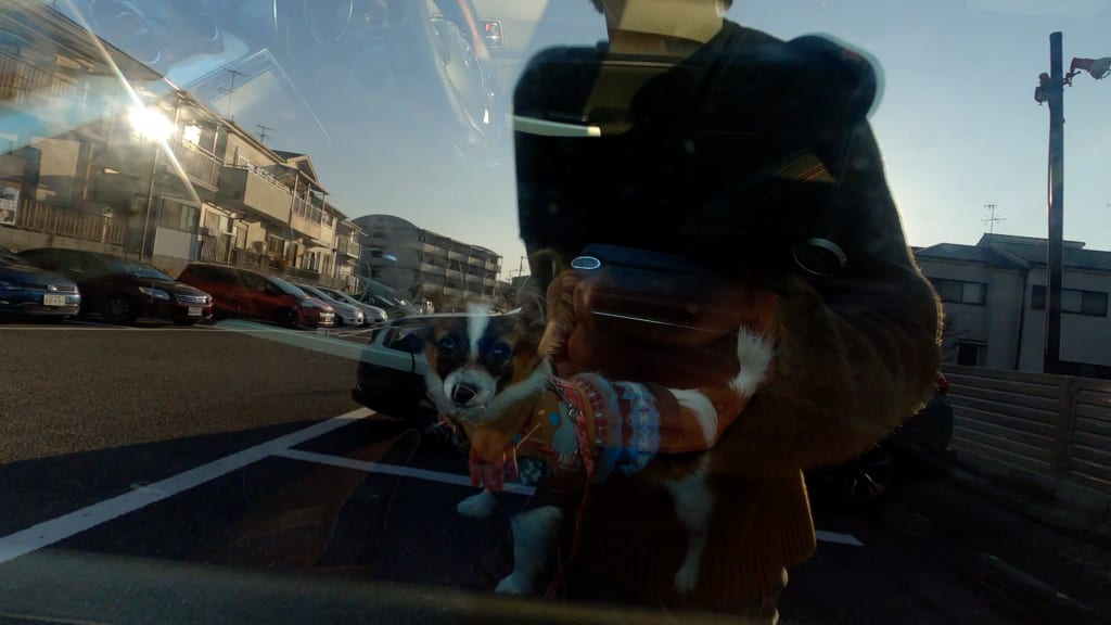 普段はさっちゃんの膝の上にいるので、助手席は落ち着かない様子。