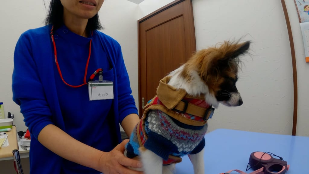 さすが獣医師さん、慣れた手付きで手際よく体重計ったり触診をしてくれたりします。