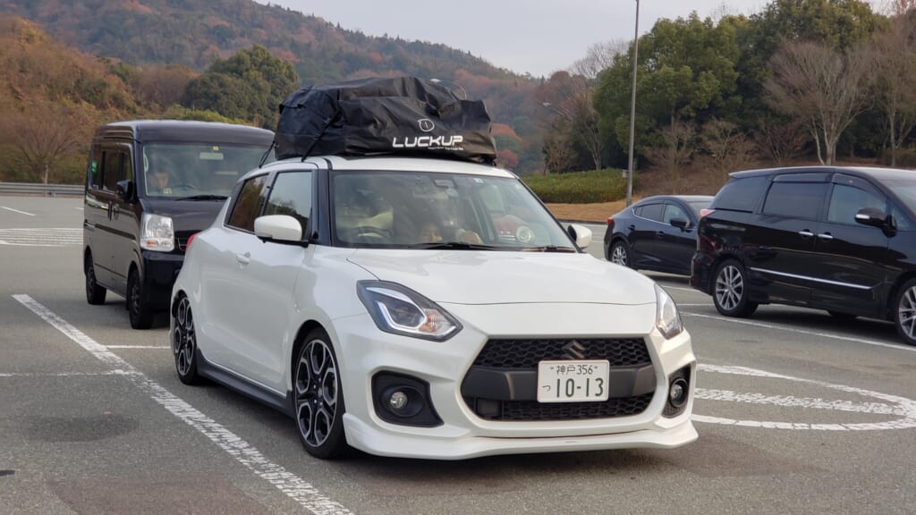 スイスポだとシートを倒しての仮眠はできるけど、そもそも後部座席にも荷物を大量に載せてあるからシートは倒せないという・・・。